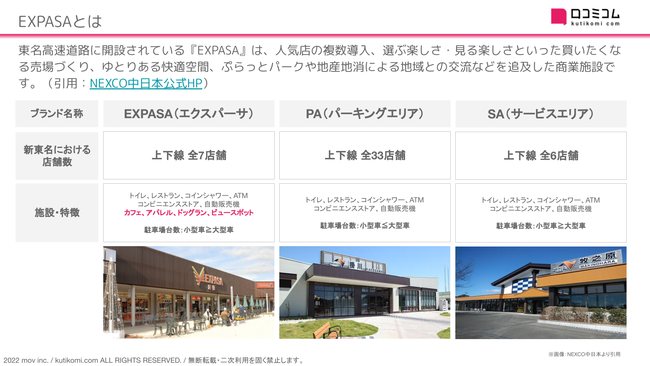 レポートではパーキングエリアやサービスエリアについても解説しています。