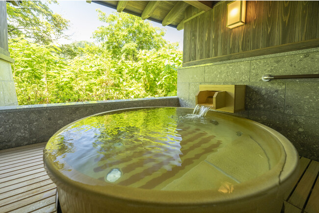 客室は、和のくつろぎのなかに洋の快適さも取り入れた設えで、全客室に天然温泉風呂を備え、豊かな眺望とともに湯浴みを贅沢にひとり占めできます。