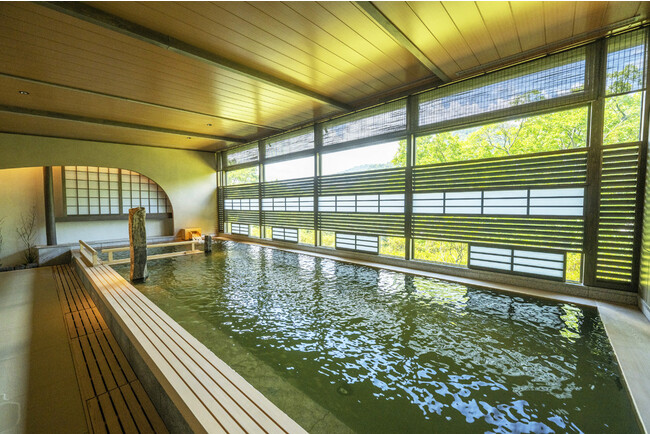 ・ 大浴場では、天然温泉と渓谷の眺望が楽しめる