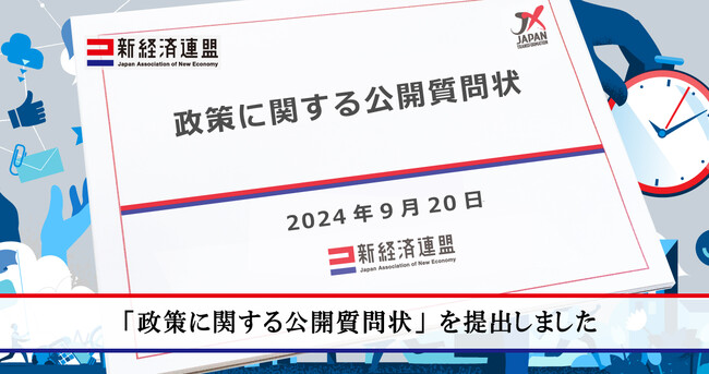 一般社団法人新経済連盟(所在地?東京都港区、代表理事?三木谷浩史)は、2024年9月20日、「政策に関する公開質問状」を自由民主党総裁選および立憲民主党代表選挙の各候補者宛てに提出しました。