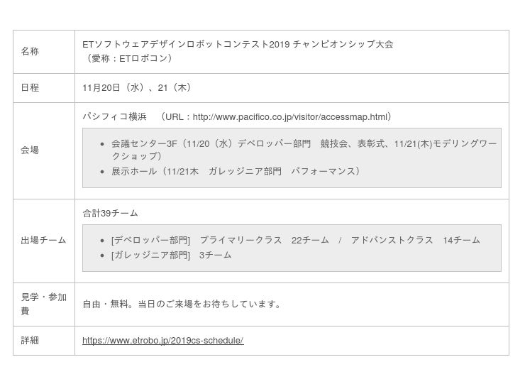18年目の「ETロボコン2019チャンピオンシップ大会」11/20(水)〜21(木)パシフィコ横浜にて全国259チームの頂点が決まる!