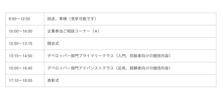 11/20(水) デベロッパー部門 競技会、表彰式(ロボットの走行競技はこの日に実施されます)