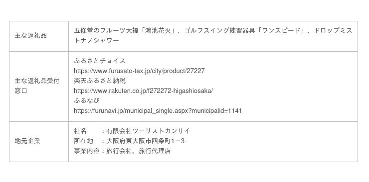 全国696市区町村で地域情報プラットフォーム「まいぷれ」を運営する株式会社フューチャーリンクネットワーク(本社:千葉県船橋市、代表取締役:石井丈晴、以下FLN)は、地元企業である有限会社ツーリストカンサイ(本社:大阪府東大阪市、代表:玉川政頼、以下ツーリストカンサイ)とともに、大阪府東大阪市のふるさと納税業務を支援しています。