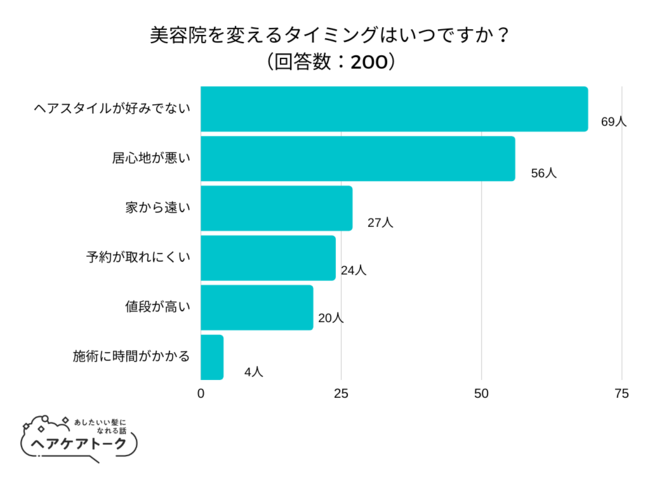 「美容院を変えるタイミングはいつですか?」とアンケート調査した結果、1位は『ヘアスタイルが好みでない』でした。