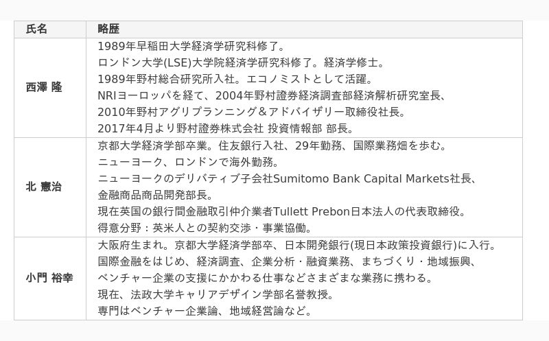 以下の3名が金融/経済のエキスパートとしてアドバイザーに就任しました。