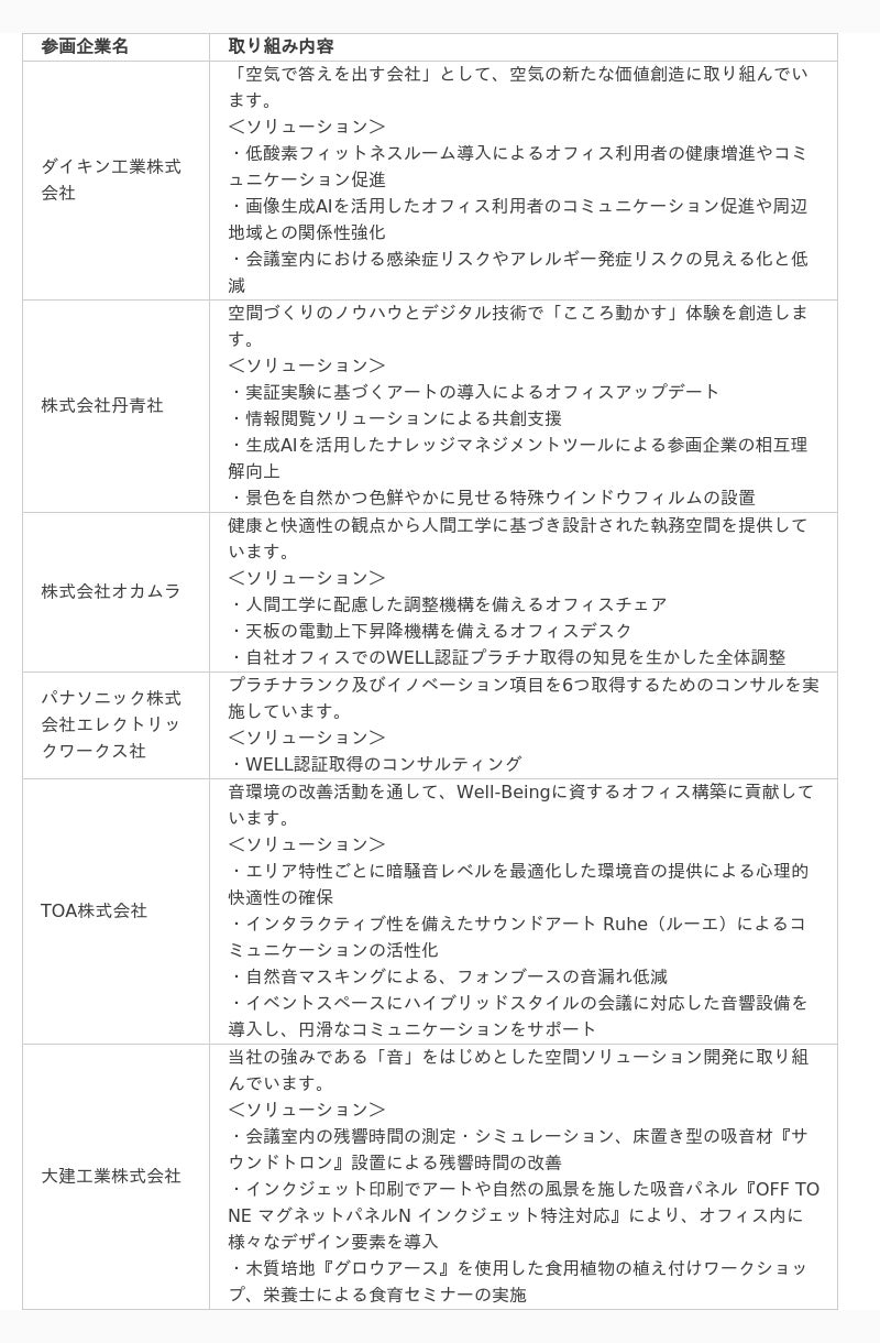 今後もオフィスワーカーにとって働きやすいWell-Beingな空間作りをコンソーシアム参画企業と共に目指してまいります。