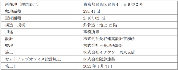阪急阪神不動産株式会社(本社:大阪市北区、社長:諸冨 隆一(※1))では、コンパクトオフィスビル「阪急阪神上野御徒町ビル」の開発を進めてまいりましたが、今般、同ビルが2022年1月31日に竣工しましたので、お知らせします。