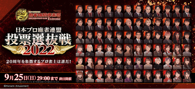 株式会社コナミアミューズメントは、アーケードゲーム『麻雀格闘倶楽部 Extreme(マージャンファイトクラブ エクストリーム)』にて、「日本プロ麻雀連盟 投票選抜戦2022」を開催することをお知らせします。