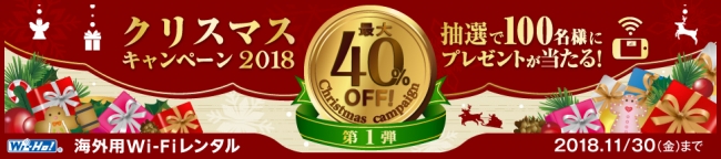 〜海外用WiFiレンタルWi-Ho!(R)、「クリスマスキャンペーン2018」をスタート〜