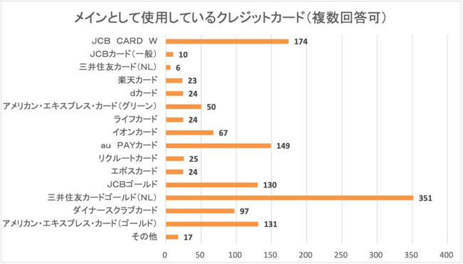 メインカードとして、三井住友カードゴールド(NL)やJCB CARD Wを利用している方が多いようです。