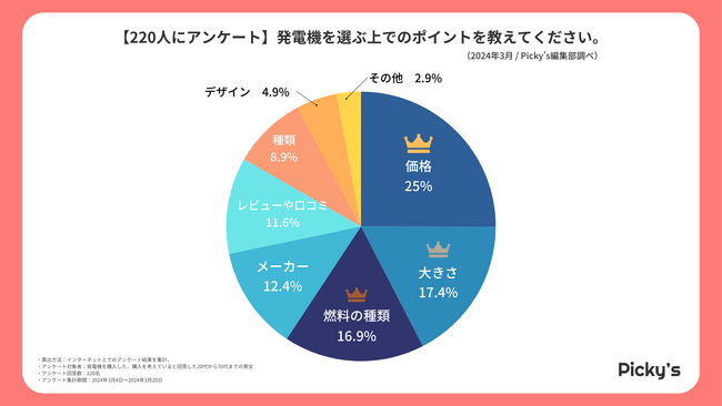 発電機を選ぶポイントとして、特に多かった回答は「価格」でした。