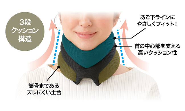 3段クッション構造で首のストレッチサポート!