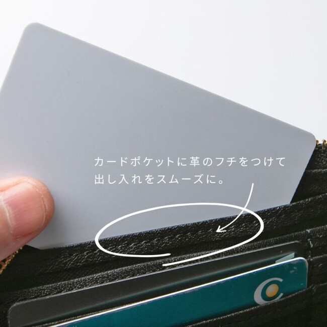 革の縁を付けて強度を出したことで、カードの取り出しにもストレスなし。