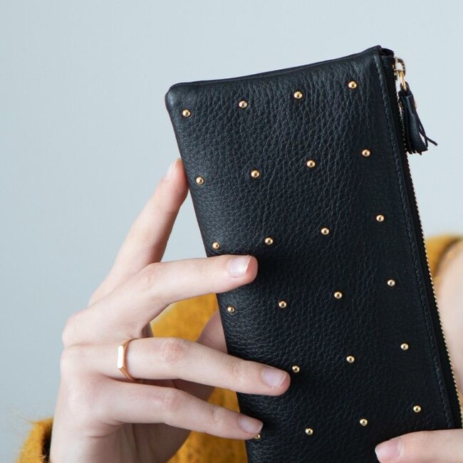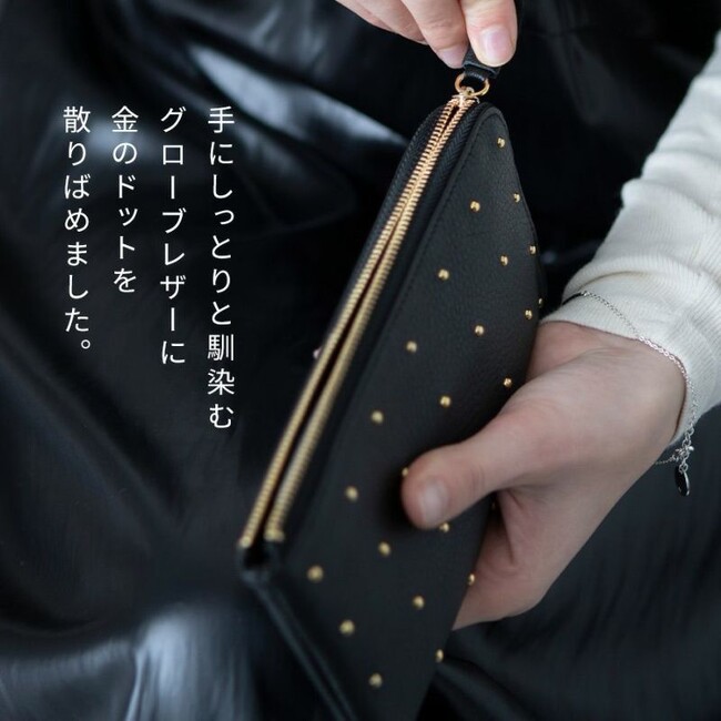 しっとりとした触感のグローブレザーに瞬くゴールドドット。