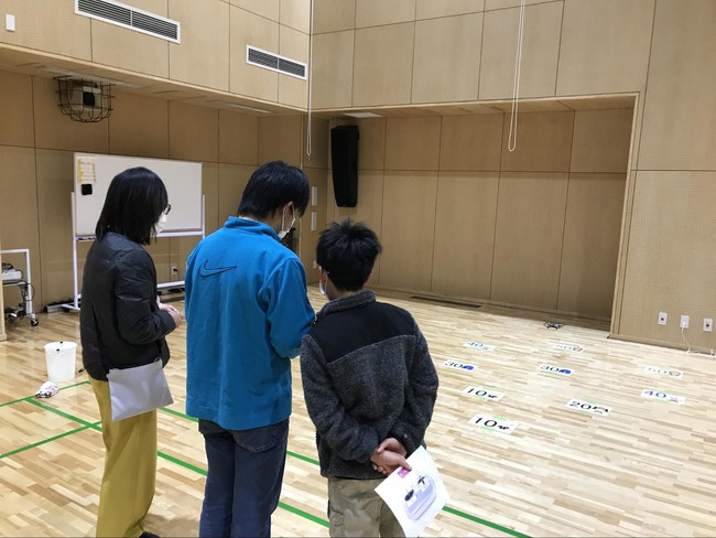 当日は抽選によって選ばれた8組16名の親子が参加しました。本講座では、TelloとKE-181H(通称:おうちドローン)の2種類の機体を使用し、ドローン初心者の方に得点ゲームをしながらドローン操縦を体験していただきました。
