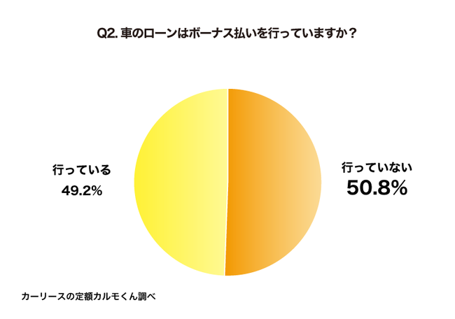 【自動車購入時のボーナス払いに関する意識調査】ローン利用者の中でボーナス払いをしている人は約半数