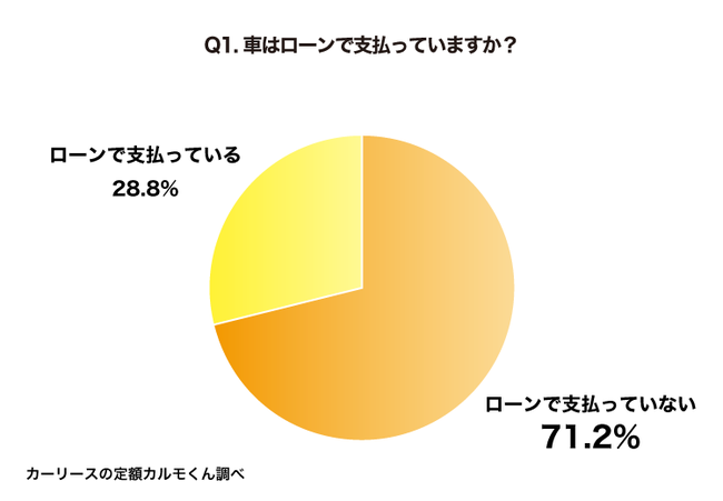 車を保有している男女に対して、ローンで支払いを行っているかを聞いたところ、「ローンで支払っていない」が71.2%という結果になりました。ローン払いで車を購入する方は少数派であることがわかりました。