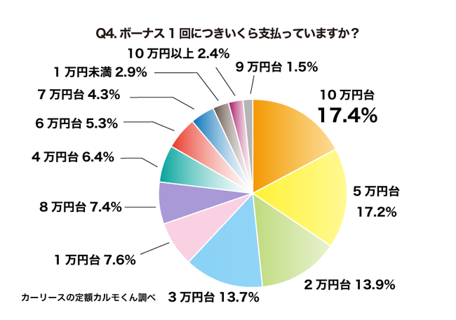 ボーナス1回あたりの支払いは「10万円」が最多、続いて「5万円」