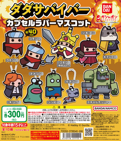 全世界1億DL突破の大人気アプリゲーム「ダダサバイバー」のラバーマスコットがガシャポン(R)に初登場!
