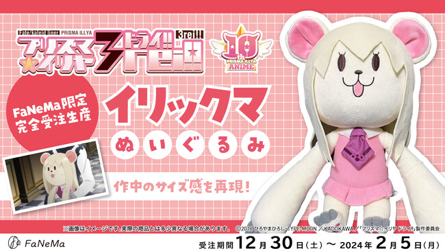 TVアニメ『Fate/kaleid liner プリズマ☆イリヤ ドライ!!』より「ぬいぐるみ イリックマ」が登場!「FaNeMa」にて受注開始!発売記念キャンペーンも開催!