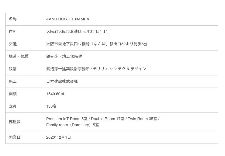 &AND HOSTEL NAMBA施設サイト・・・https://andhostel.jp/namba/