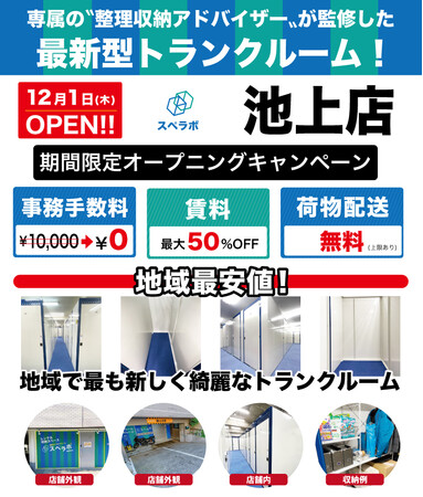 【12月1日(木)オープン】見学から契約、解約まで完全非接触・非対面、お申し込みからご利用まで最短1時間!都内、大阪などにて絶賛運営中のトランクルーム【スペラボ】が東急池上線池上駅近くに出店!