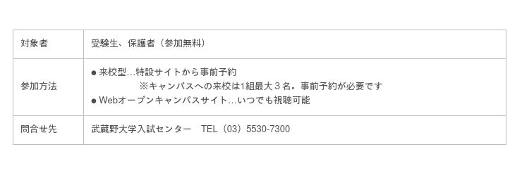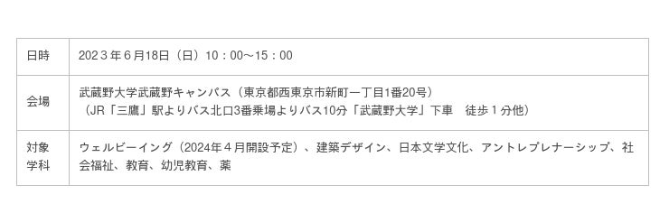 ■オープンキャンパス特設サイト:https://www.musashino-u.ac.jp/admission/faculty/event/oc/