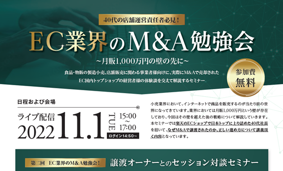 【セミナー】「40代の店舗運営責任者必見!!」EC業界のM&A勉強会! 〜月販1,000万円の壁の先に〜