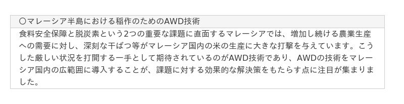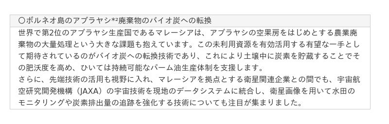 AWD技術・バイオ炭から、衛星技術を活用したマレーシアでの新しい挑戦