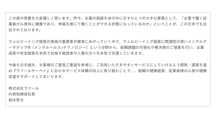 ■ ラフールサーベイが「ウェルビーイング賞」を受賞