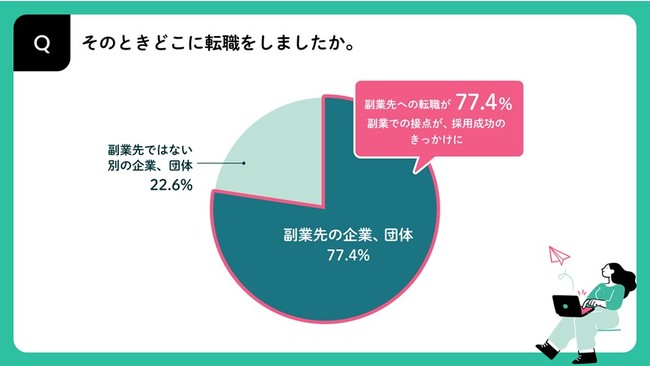 ・副業がきっかけで転職した人のうち、副業先に転職した人は全体の7割以上