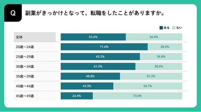 ・副業がきっかけとなって転職したことがあるのは20代が最多に