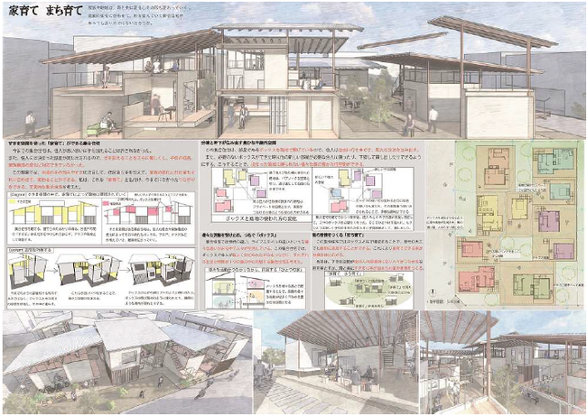 応募数が多く、審査は簡単ではなかったが、力のある案が多く集まる充実した会だった。その中で最優秀となった黒澤・木嶋案に、私は最も注目した。木工所を中心に置く提案で、自分の居場所を自分で考え創造してゆくといういわば当たり前のことを建築モデルとして提示した。
