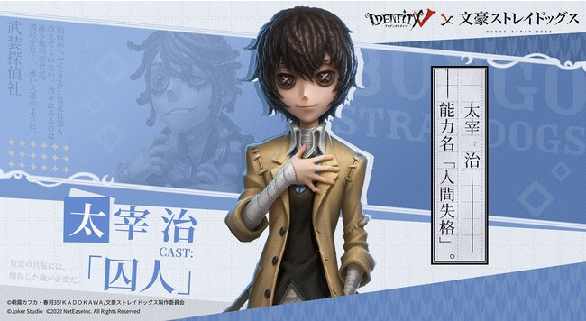 『Identity V』×『文豪ストレイドッグス』コラボ第一弾では、「傭兵」UR衣装-中島敦がショップに登場し、初週のみ20%オフで購入できる。また、「囚人」UR衣装-太宰治と「囚人」UR携帯品-『太宰の愛読書』のパックも登場し、パックで購入すると32%オフとなる。