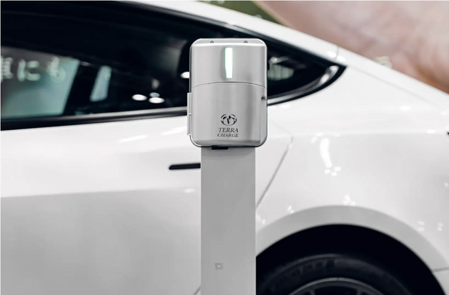 「Terra Charge」は、2022年4月より提供を開始した電気自動車(EV)向けの充電インフラです。EVの普及率が低い状況で「費用がかかる充電設備導入の合意形成が難しい」という社会課題を解決すべく、初期費用無料・ランニングコスト無料というソリューションを実現しています。