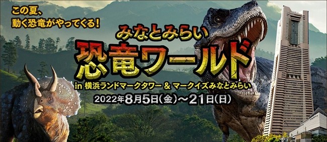 横浜ランドマークタワー(神奈川県横浜市/運営:三菱地所プロパティマネジメント株式会社)と、MARK IS みなとみらい(神奈川県横浜市/運営:三菱地所プロパティマネジメント株式会社)は、2022年8月5日(金)〜8月21日(日)の夏休み期間限定イベント『この夏、動く恐竜がやってくる!みなとみらい 恐竜ワールド』を開催します。