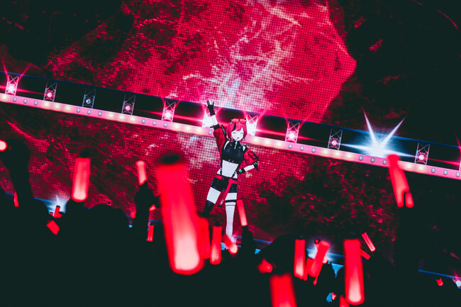 REGALILIAの2人に加え、あおぎり高校の山黒音玄と石狩あかりの2人も合流。あまり見ることのない4人のトークが終わると、この日初となる1人でのライブパフォーマンスが展開された。『ユニバーサル・バニー』を披露した石狩あかりは、会場中を真っ赤なペンライトで埋め尽くした。妖艶な雰囲気と、力強い歌声で会場中をロックし、楽曲の雰囲気も相まってより一層ライブ感を演出した。歌唱力の高さもそうだが、1人という状況でも堂々としたパフォーマンスは圧巻だった。