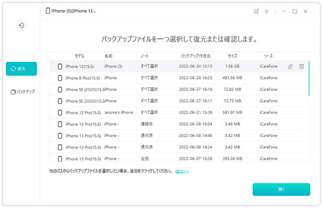 方法1、iCareFoneを使ってバックアップしたデータをiPadに一括復元【選択可能】