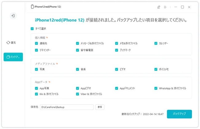 方法1:iCareFoneを通して20種類以上のiPhoneデータをバックアップする【無料】