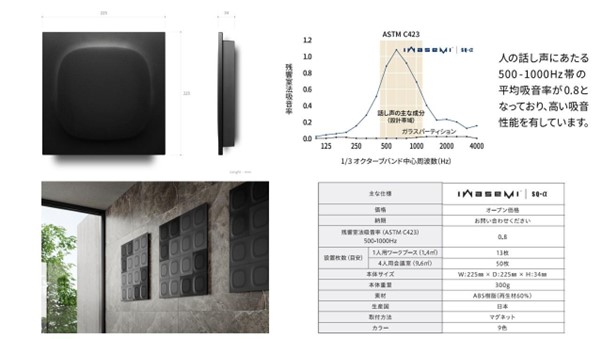 「iwasemi(TM) SQ-α」は、硬質で塗装ができる、新しい意匠表現を獲得した吸音材です。