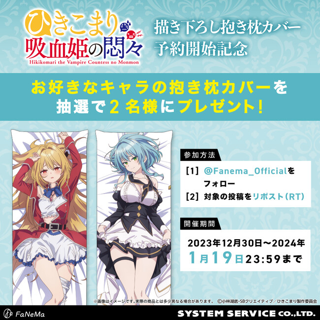 システムサービス株式会社(本社:東京都豊島区、代表取締役社長:田村宗弘)は、アニメ・マンガ・ゲーム作品等のキャラクター商品の企画・製作・販売をする自社ECサイト「FaNeMa」(URL:https://fanema.jp/)にて、TVアニメ『ひきこまり吸血姫の悶々』より「抱き枕カバー」を発売いたします。