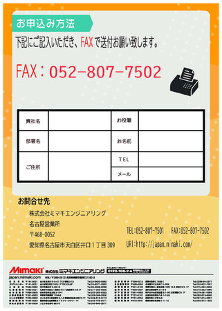 フォームにご記入のうえ、下記宛先にFAXで送付いただきますようお願い申し上げます。