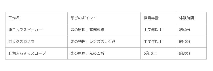 「わくわく科学教室<音と光の工作編>」 実施概要