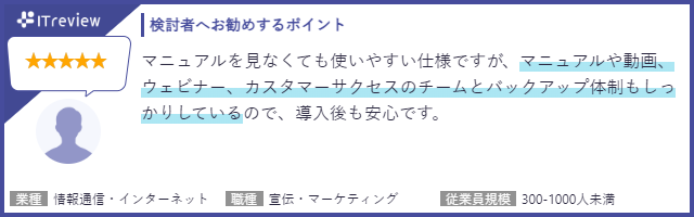 「ITreview」の定める基準で、顧客満足度と製品認知度の双方が特に良かった製品・サービスを「Leader」として表彰しています。