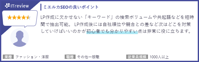 「ITreview」に寄せられたミエルカSEOのレビュー ※一部抜粋