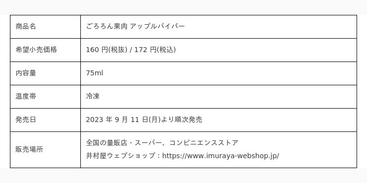 井村屋株式会社(本社:三重県津市高茶屋七丁目1番1号、社長:岩本 康)は、『ごろろん果肉 アップルパイバー』をリニューアルし、9月11日(月)より全国の量販店・スーパー、コンビニエンスストア、井村屋ウェブショップにて順次発売します。