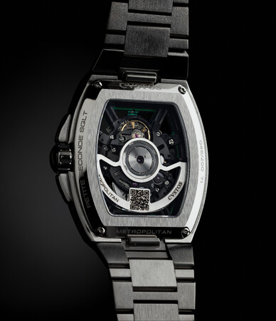メトロポリタンコレクションは、全く異なる2つの「顔」があります。「メトロポリタン P-S スケルトン」は、極限までスケルトン化した自動巻き式ムーブメントの佇まいを視認することが可能となっています。メトロポリタンエリアの中心地から周囲に伸びる道を思わせるスケルトンデザインは直線的なバーインデックスへと繋がり、メタリックグリーンのカラーリングが印象を際立てています。