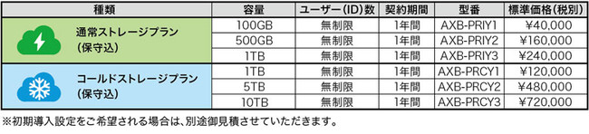 ■価格表(サポート費込み、ユーザー無制限で2種類の基本プランから容量を選択できます。)