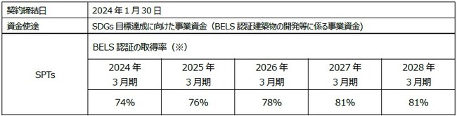 当社が展開する「VORT(R)」シリーズおよび管理物件は、都心5区を中心に170棟を超えており、建築物省エネルギー性能表示制度 BELS認証(Building-Housing Energy-efficiency Labeling System)を取得した実績は、62棟(2024年1月現在)に上っています。優れた環境性能を有する不動産の形成により、CO2排出量の削減等、環境や社会への配慮に努めています。このたびの「とりぎんサステナビリティ・リンク・ローン」において、当社は下記のようにSPTを設定しました。毎年3月末の会計年度の判定値における達成状況により、鳥取銀行の貸付金利の優遇を条件とするものです。
