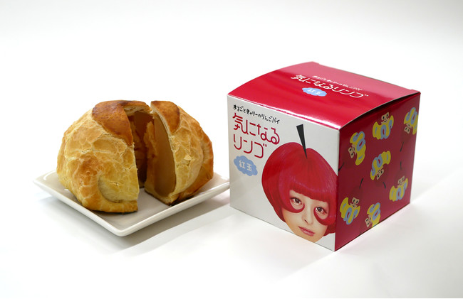 「気になるリンゴ」は、シロップ漬けされた青森リンゴを丸ごと1個パイで包んで焼き上げたアップルパイ。さらに今回は希少性の高い品種「紅玉」が使用されており、シャキシャキとした食感と甘酸っぱい紅玉本来のみずみずしい美味しさを存分に味わえる逸品である。さらにコラボパッケージは、2012年にリリースされた1stアルバム「ぱみゅぱみゅレボリューション」のジャケットデザインをオマージュに、ショートボブヘアの赤いウィッグを“リンゴヘアー”に見立てたきゃりーが大きく描かれ、インパクト十分なデザインとなっている。